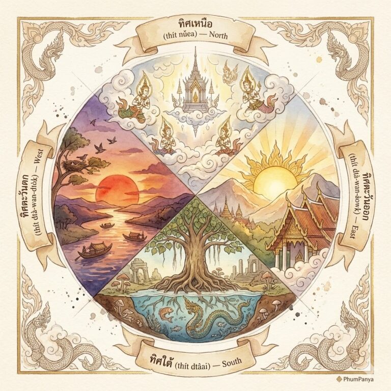 In Thai, east is literally “where the sun comes out” and north means “above.” Discover how Thai maps directions through the sun’s path and vertical space.