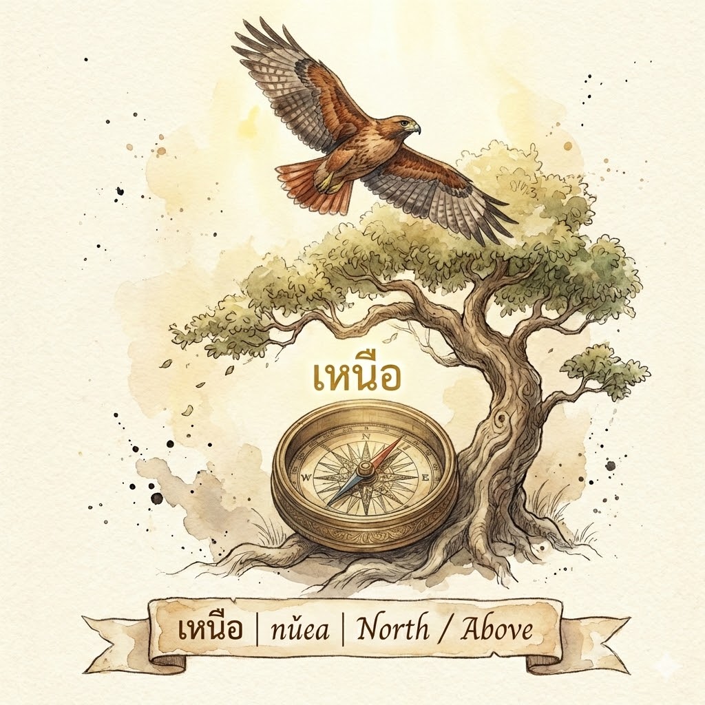 Beyond the literal Direction, เหนือ is used in: 1) เหนือเมฆ 📣 (nǔea-mêek—Above Cloud): Handling a situation with superior, unseen tactics or trickery. 2) เหนือชั้น 📣 (nǔea-chán—Above Layer): Completely outclassing a competitor in skill or status.