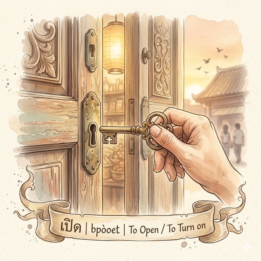 เปิด 📣 (Bpoet): To Open / To Turn On