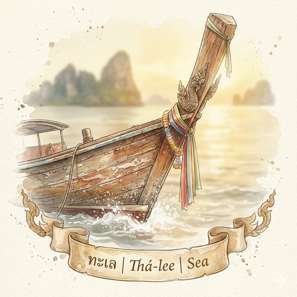 This is the “everyday” word. It’s the water you can see from the shore. In Thai culture, ทะเล 📣 is a place of relaxation, food, and travel. It refers to both the body of saltwater and the general “seaside” destination.