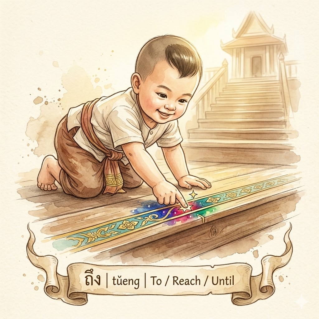 Root Meaning: ถึง (tǔeng) — Reaching.