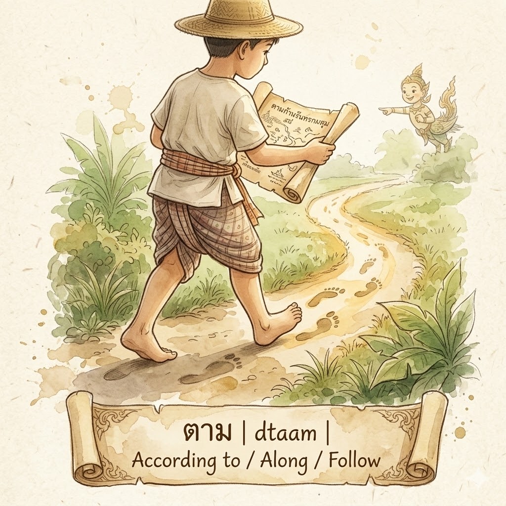 ตามทาง 📣 (dtaam thaang) — Along the way / Following the road.