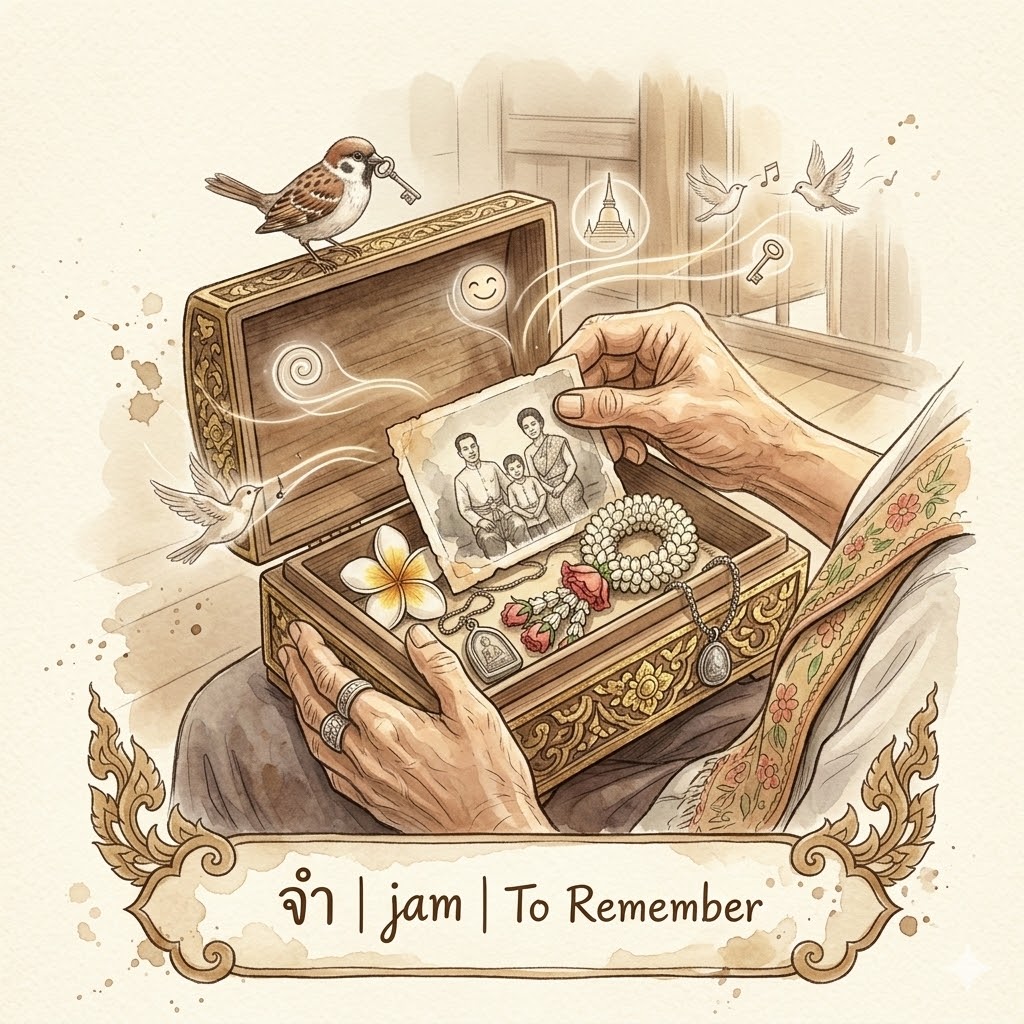 จดจำ 📣(jòt jam) — To remember deeply / To cherish a memory.