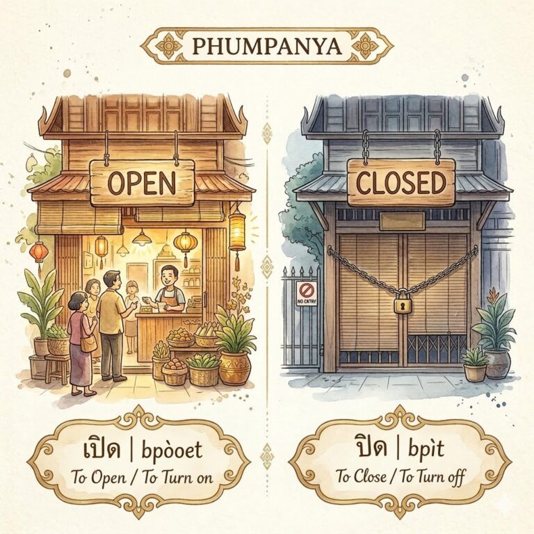 English needs dozens of verbs — turn on, switch off, launch, activate, shut down. Thai needs two. เปิด opens everything. ปิด closes it. Here’s the logic behind the most useful word pair in the language.